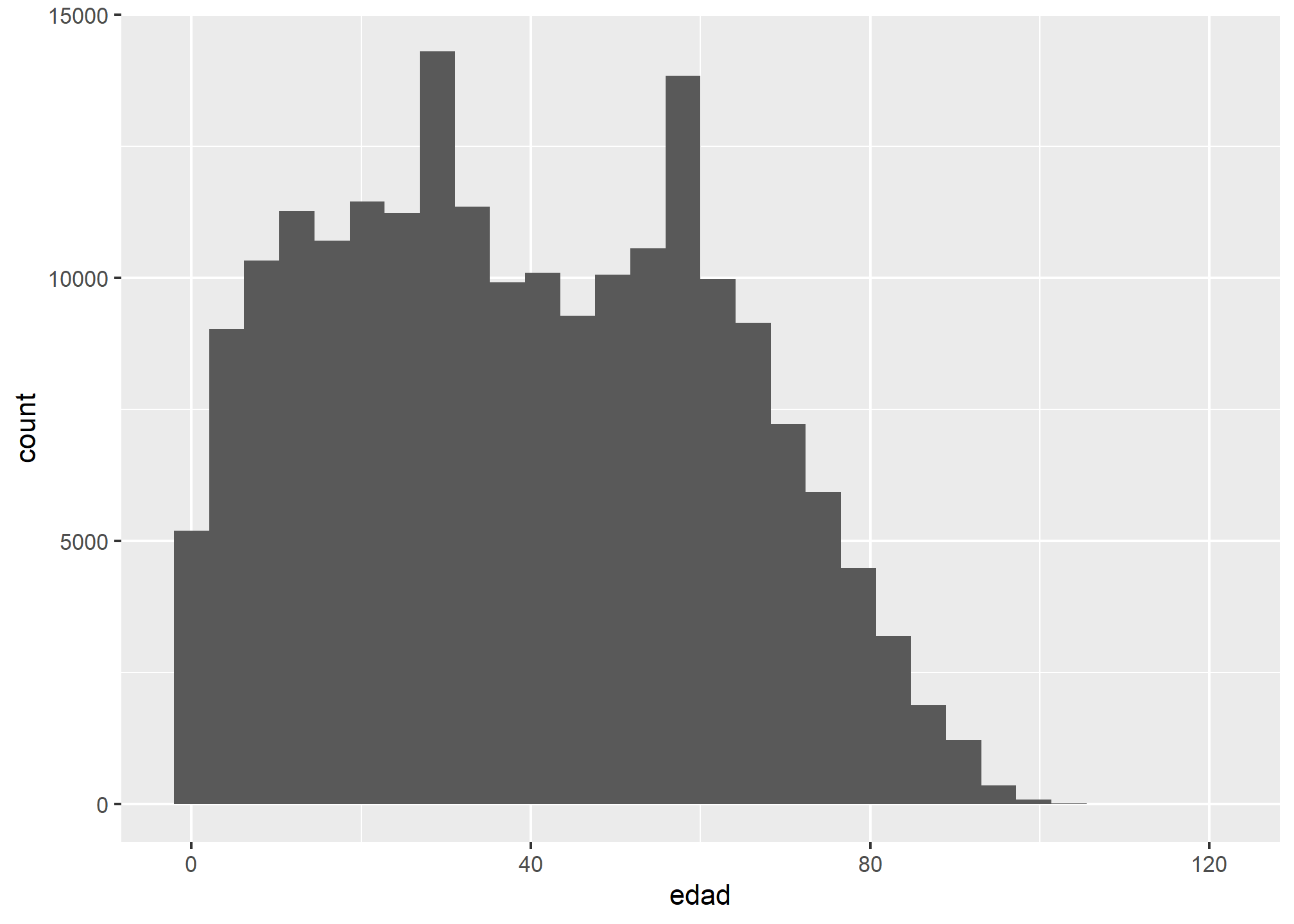 - filter(edad < 90): Filtra para incluir solo a individuos con edad menor a 90 años.
