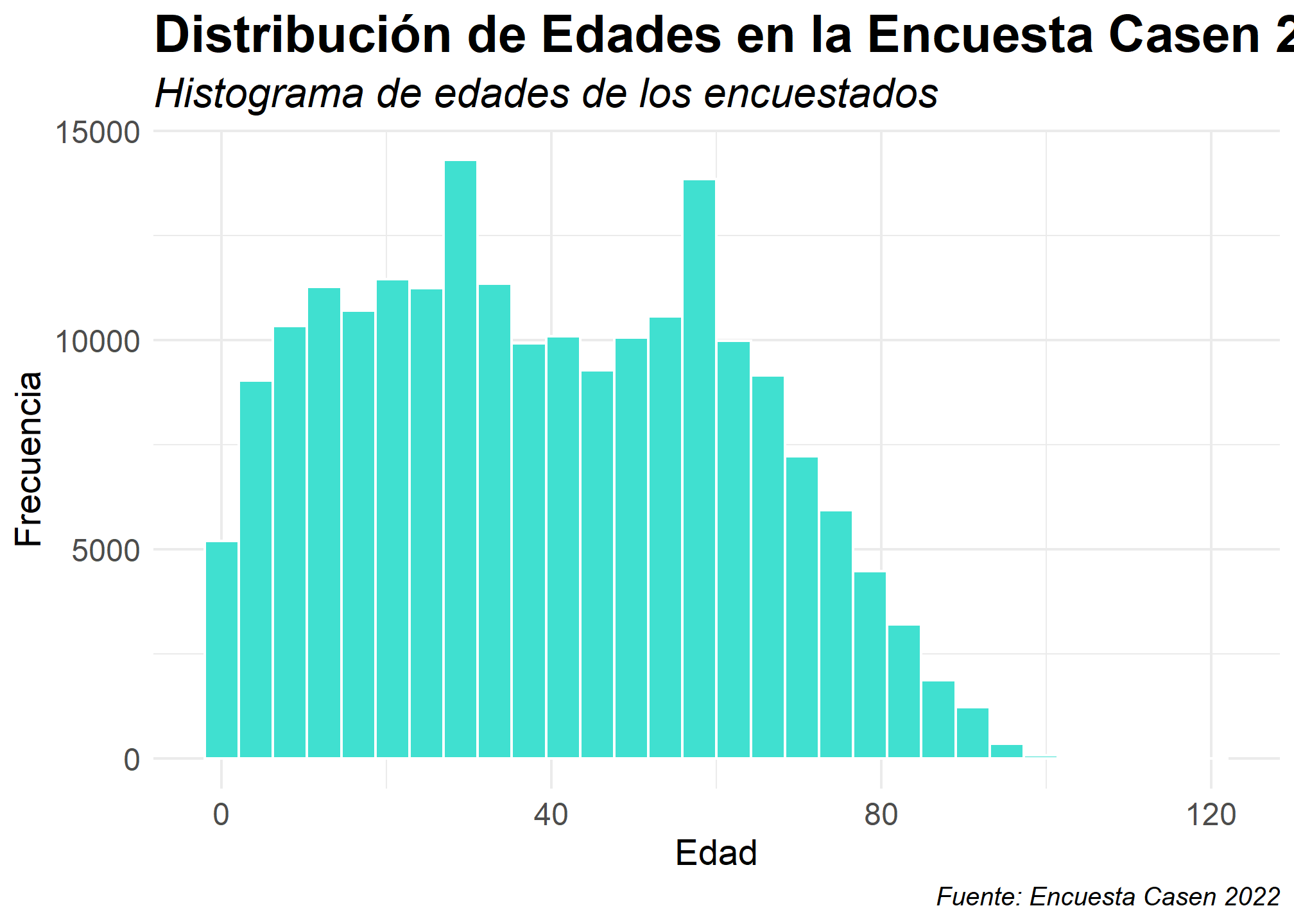 labs(title = "Distribución de Edades en la Encuesta Casen 2022",