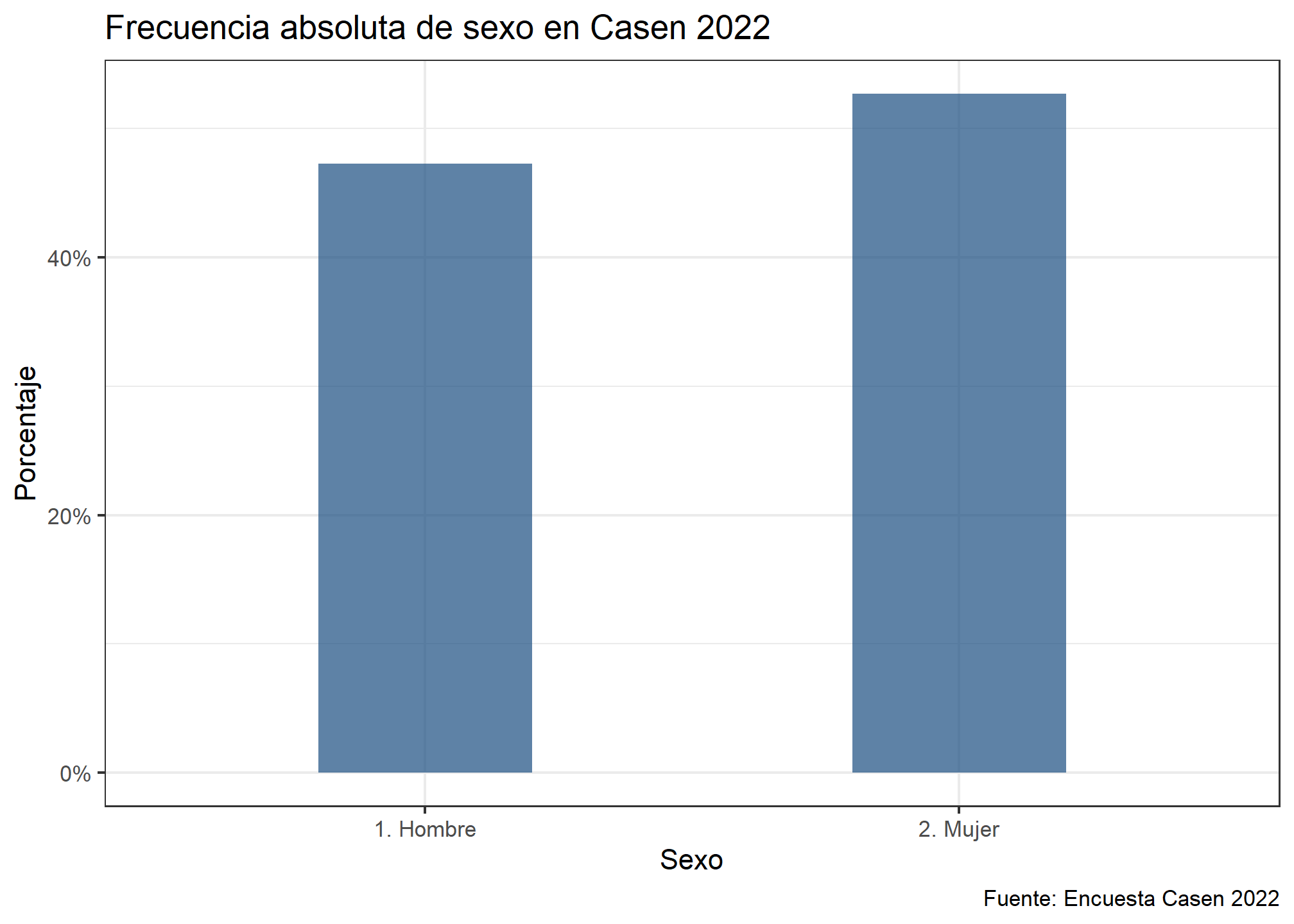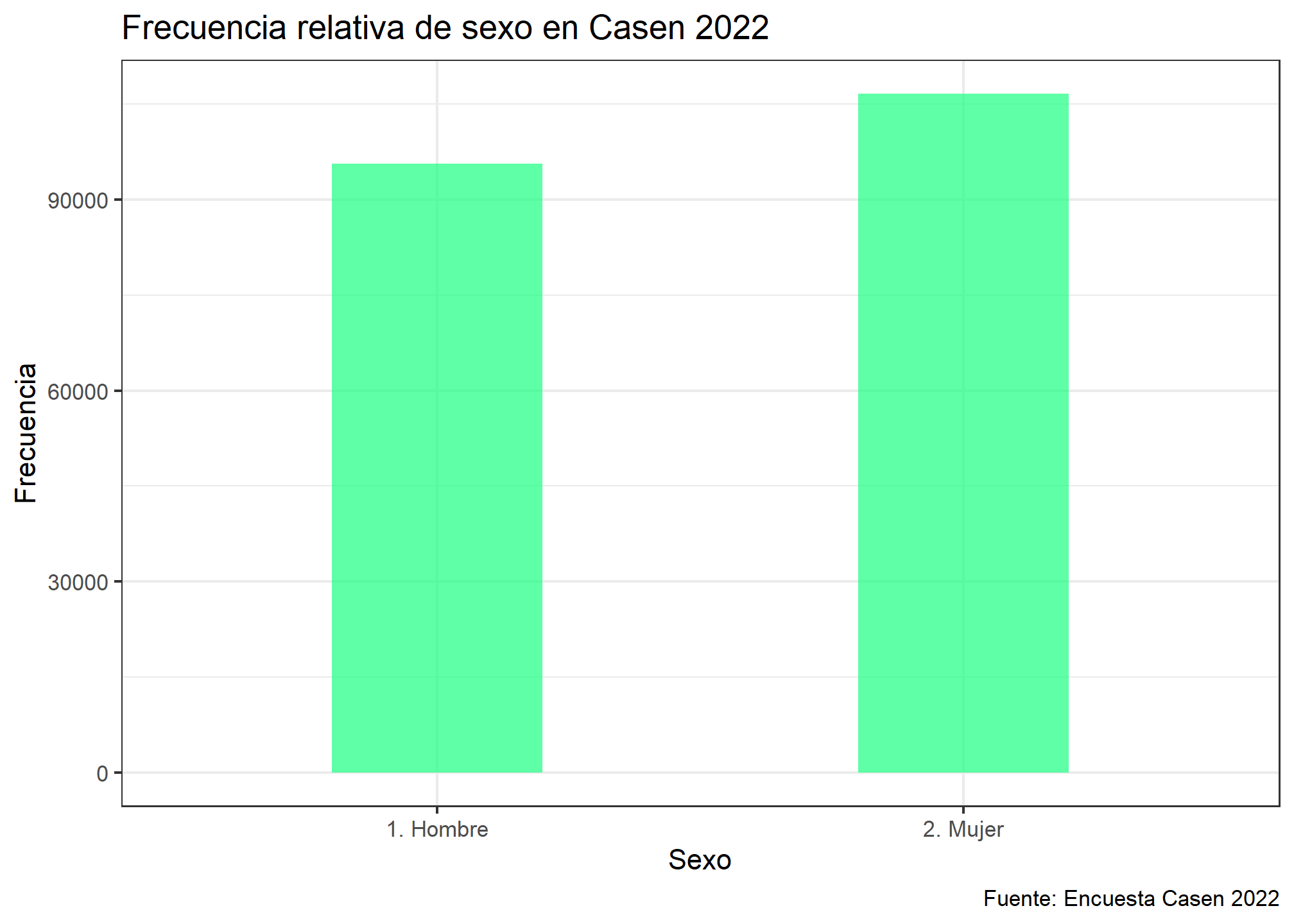 labs(title = "Frecuencia absoluta de sexo en Casen 2022",